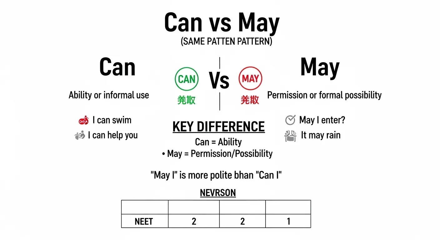 They look similar, but their meanings are not the same in formal English. Students often get confused in exams, and many people use “can I” instead of “may I” in polite situations.